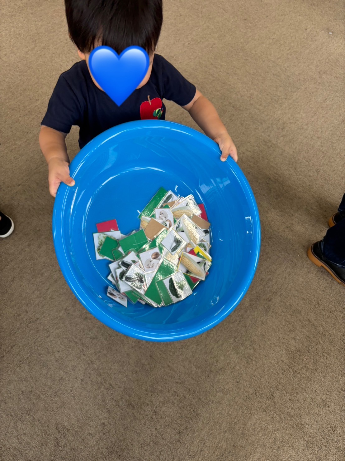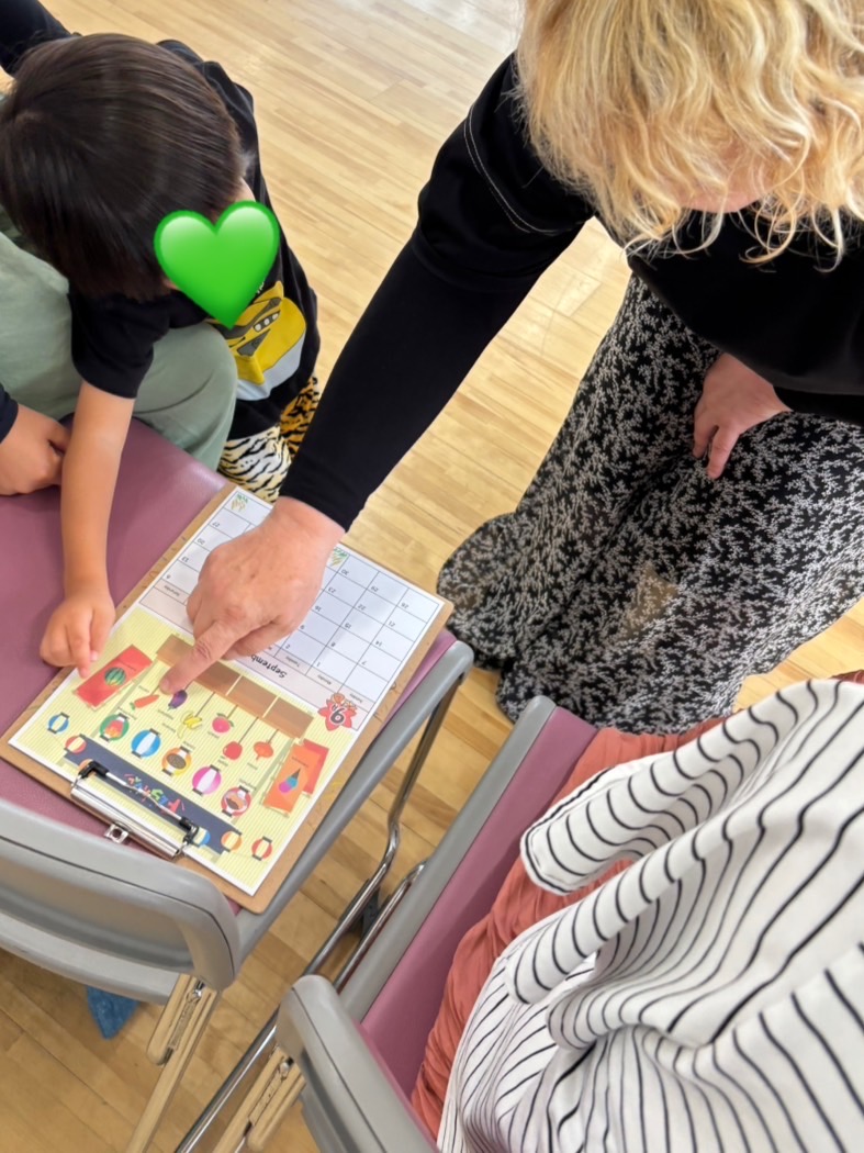 先生が言った単語と同じものを探して、先生に見せに行っています( ´ ▽ ` )
