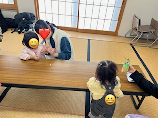 毎日寒いですね。寒さに負けず、今日も13組の親子さんが来てくださいました。ありがとうございます。