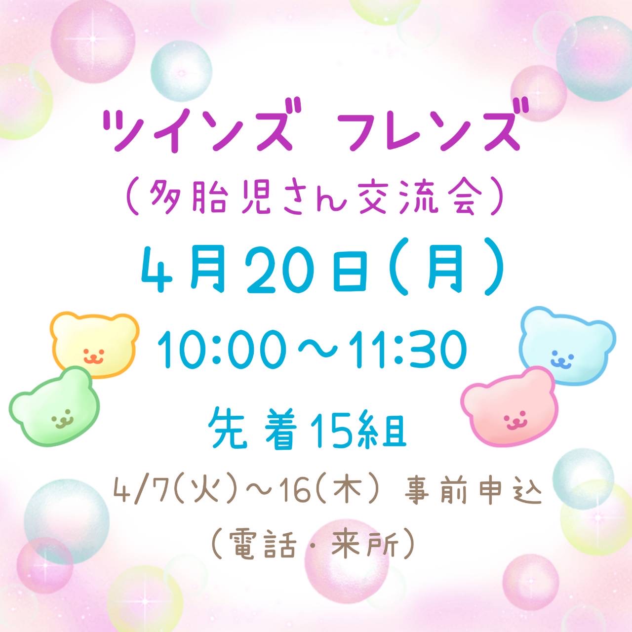 ふたごみつごを妊娠中の方やその家族、及びふたごやみつごを子育て中のお母さんやお父さんの交流会です。