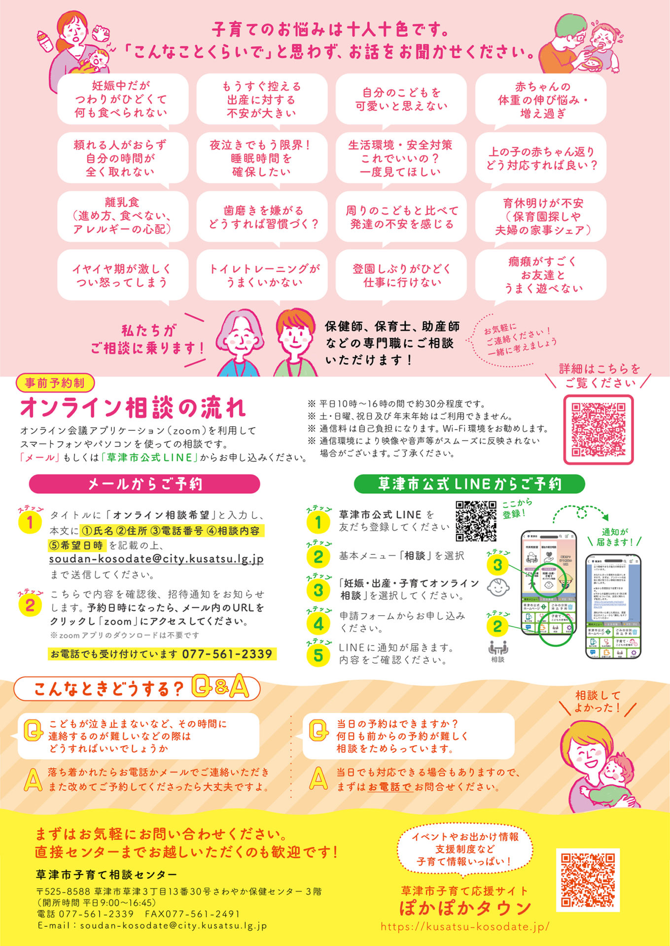 「soudan-kosodate@city.kusatsu.lg.jp」まで送信してください。
